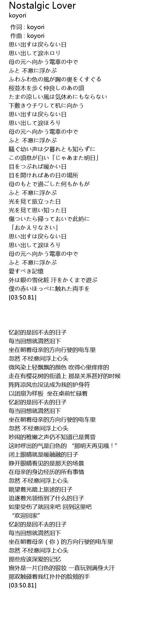 | [00:00.000] | 作词 : koyori |