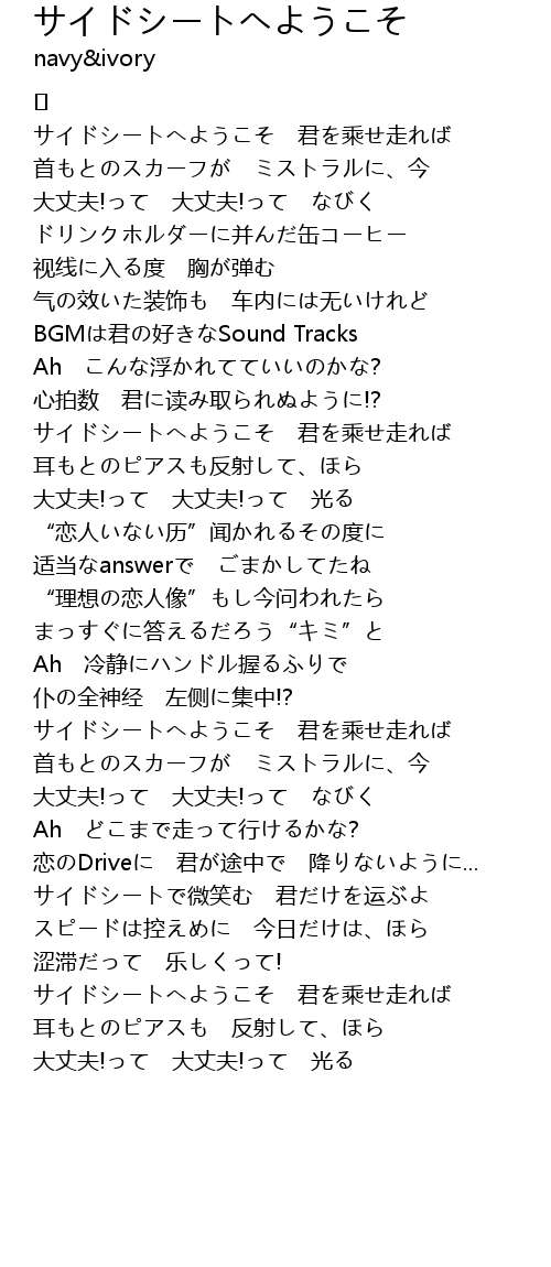 | Song | サイドシートへようこそ |