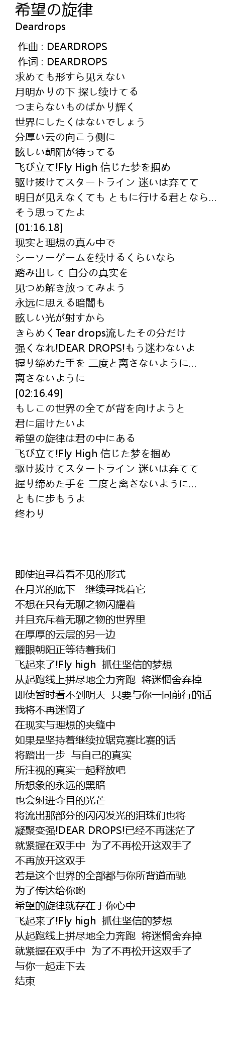 | [01:59.77] | 强くなれ!DEAR DROPS!もう迷わないよ |