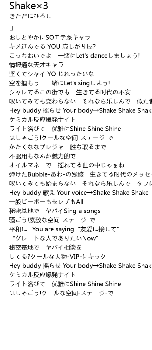 | Hey buddy 摇らせ Your body→Shake Shake Shake | |