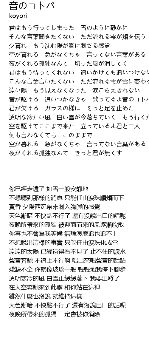 | [00:34.36] | 君はもう行ってしまった 雪のように静かに |