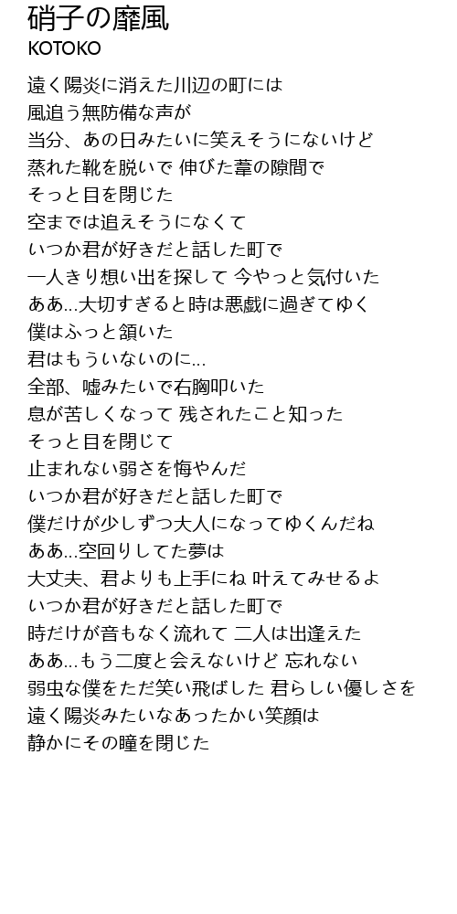 | 弱虫な僕をただ笑い飛ばした 君らしい優しさを | |