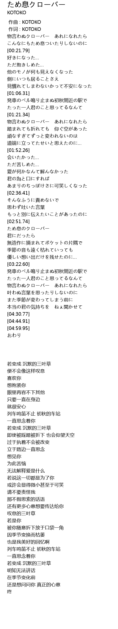 | [03:54.01] | 物言わぬクローバー あれになれたら |