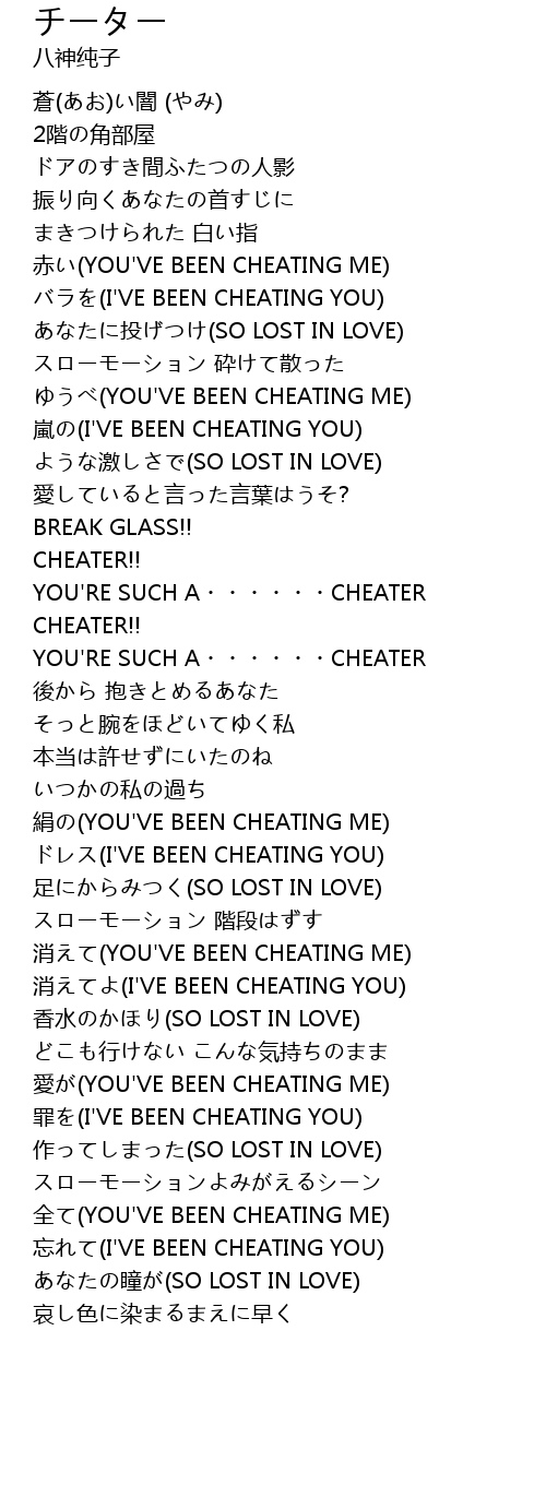 | [01:52.400] | YOU' RE SUCH A CHEATER |