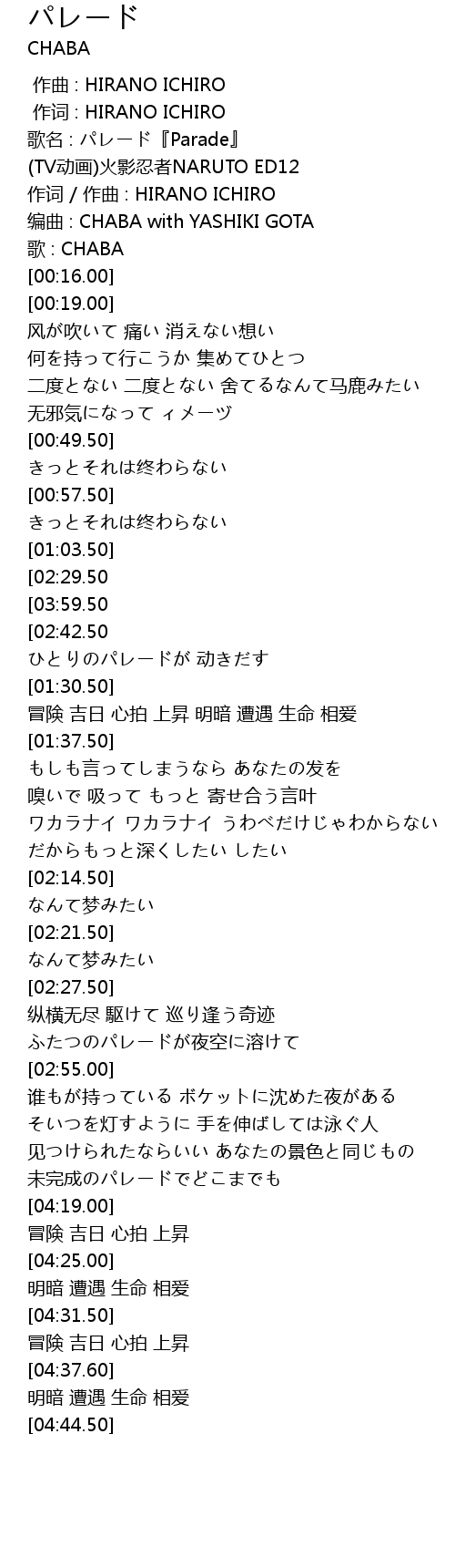 | [00:00.00] | 歌名 : パレード『Parade』 |