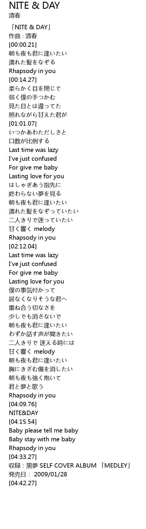 | [04:14.07] | NITE&DAY |