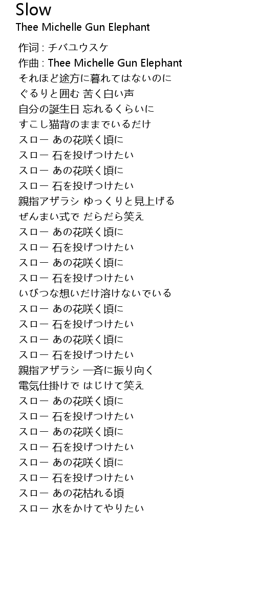 | [00:01.000] | 作曲 : Thee Michelle Gun Elephant |