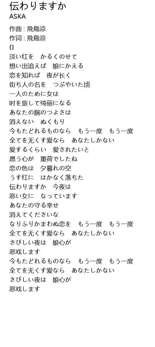 なりふりかまわぬ恋を もう一度 もう一度 |