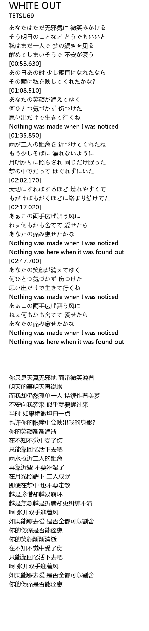 | [04:03.270] | Nothing was made when I was noticed |