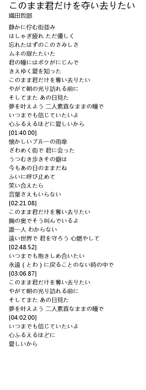このまま君だけを夺い去りたい jun duo qu Lyrics