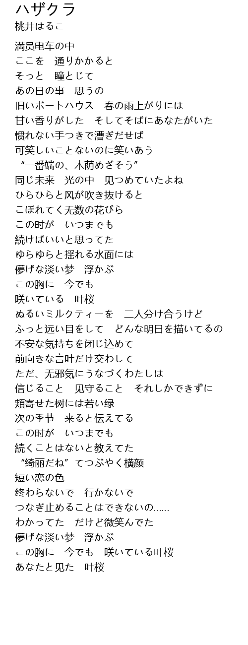 | [04:23.62] | あなたと见た 叶桜 |