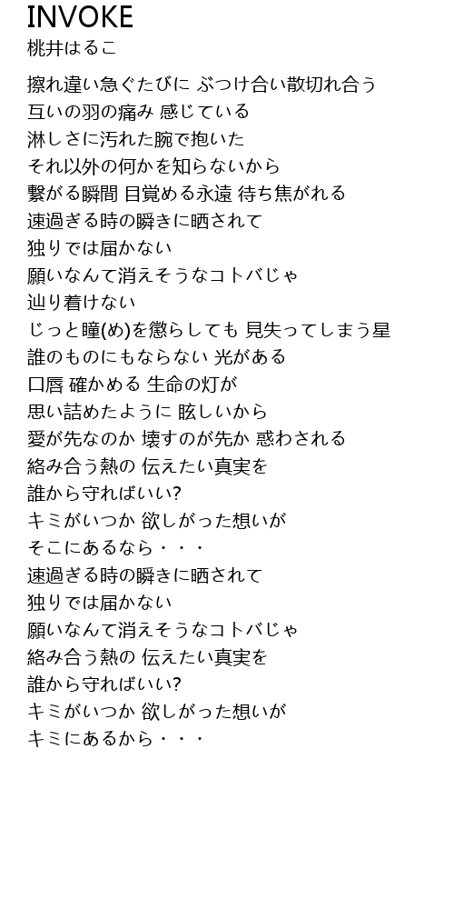 | Song | INVOKE |