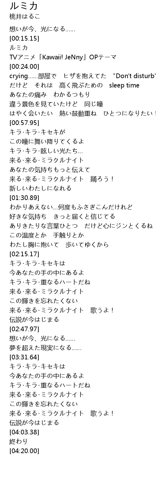 | [00:19.00] | TVアニメ「Kawaii! JeNny」OPテーマ |