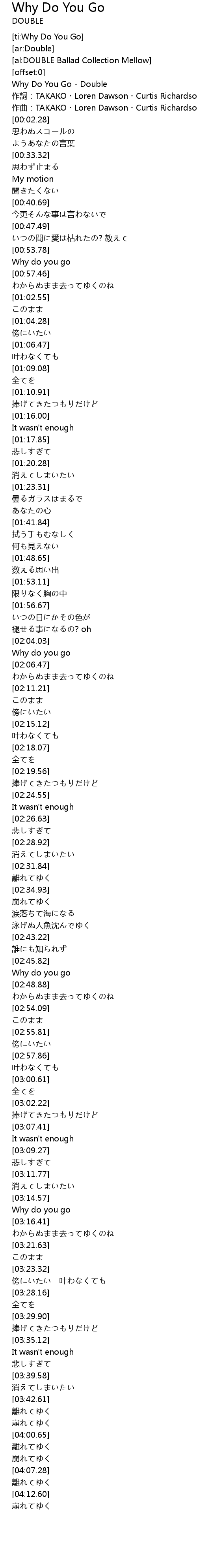 | [00:00.91] | Why Do You Go - Double |