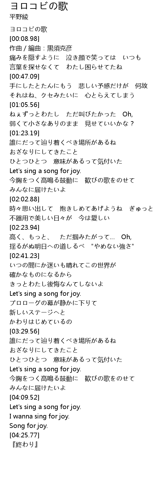 | [03:32.45] | 誰にだって辿り着くべき場所があるね |