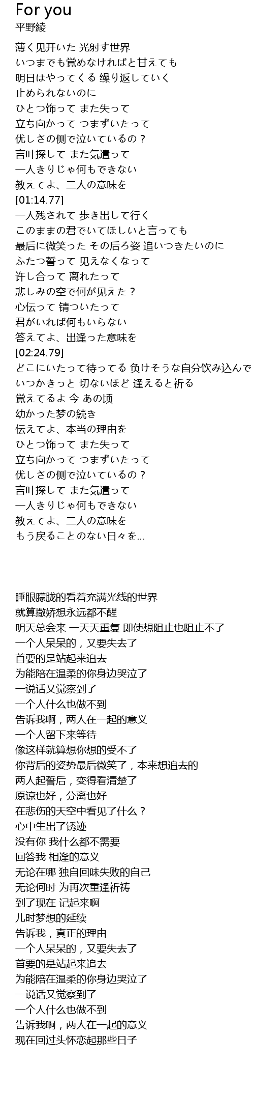 | [02:10.64] | 答えてよ、出逢った意味を |