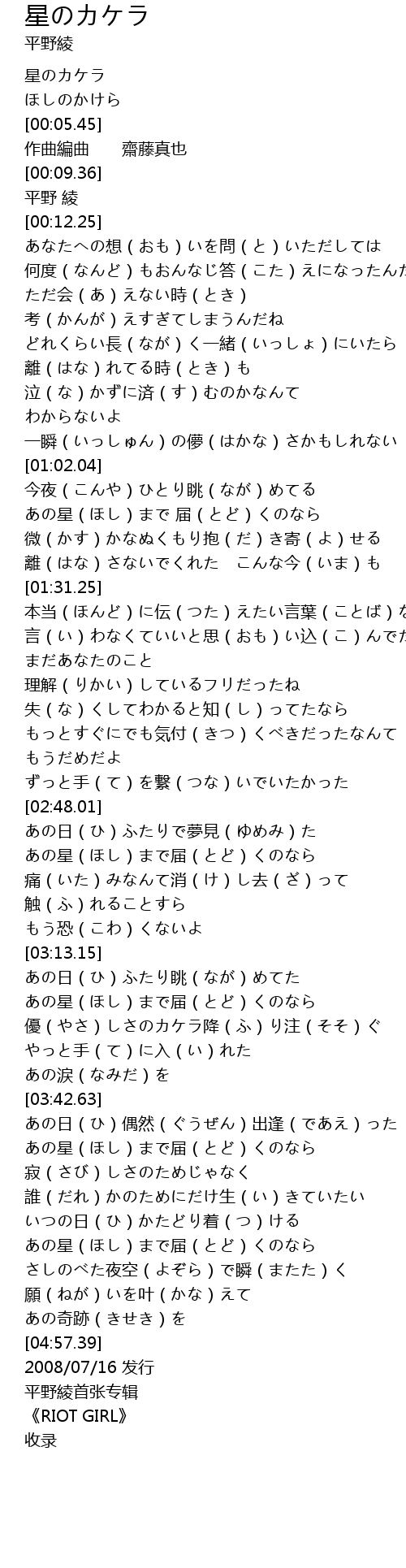 | [04:07.39] | あの星(ほし)まで届(とど)くのなら |