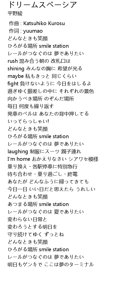 | [03:41.30] | 明日もゲンキで ここは夢のターミナル |