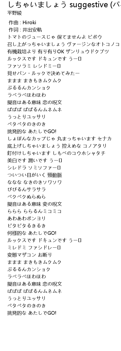 | Song | しちゃいましょう suggestive (パキラVer.) |