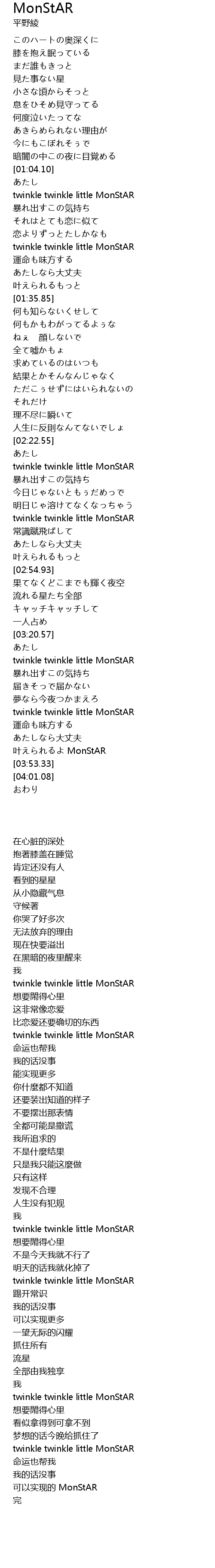 | [03:34.70] | twinkle twinkle little MonStAR |