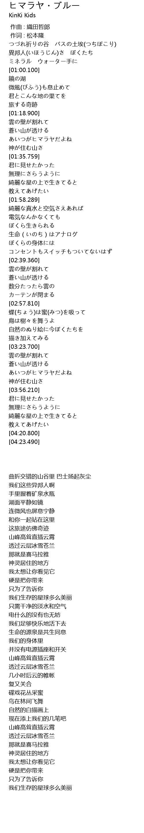 | [00:43.560] | つづれ祈りの谷 バスの土埃(つちぼこり) |