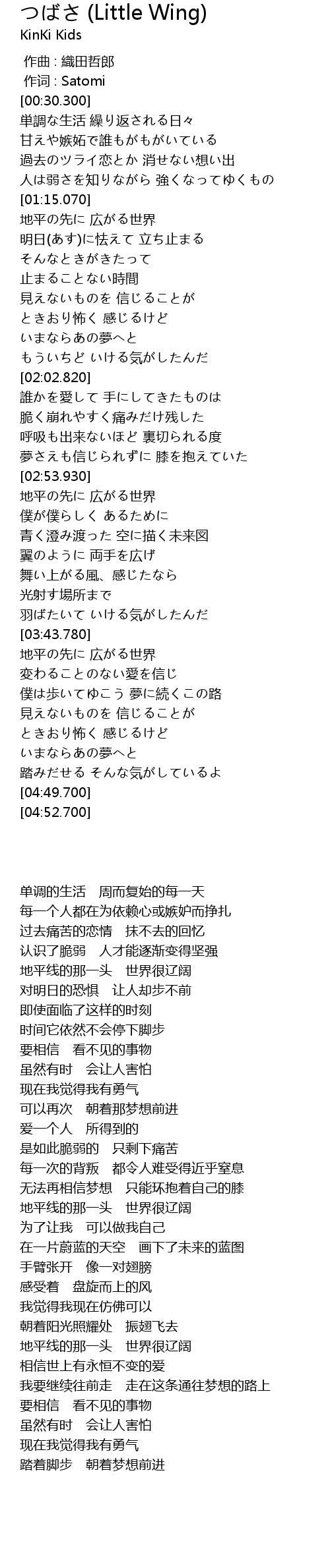 | [03:36.810] | 羽ばたいて いける気がしたんだ |
