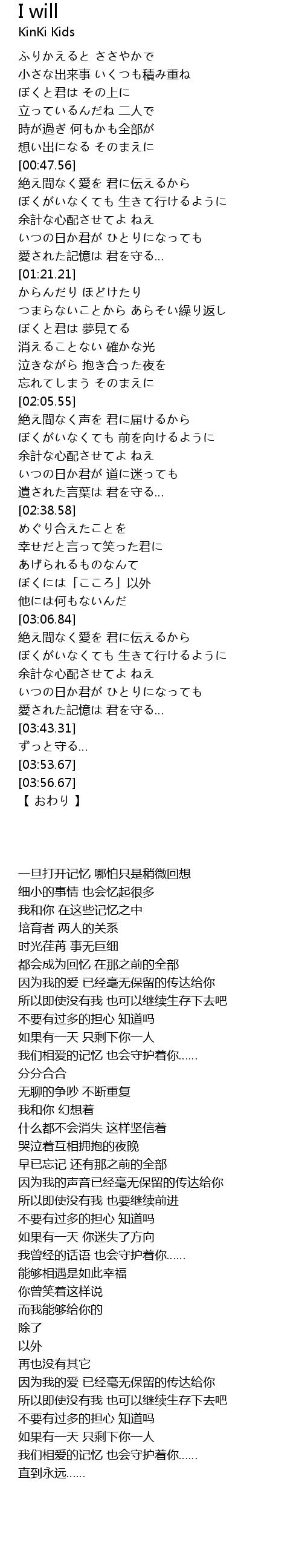 | [03:49.53] | ずっと守る… |