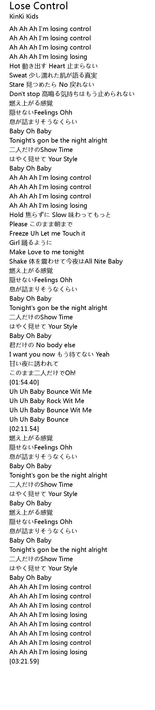 | [03:06.45] | Ah Ah Ah I' m losing control |