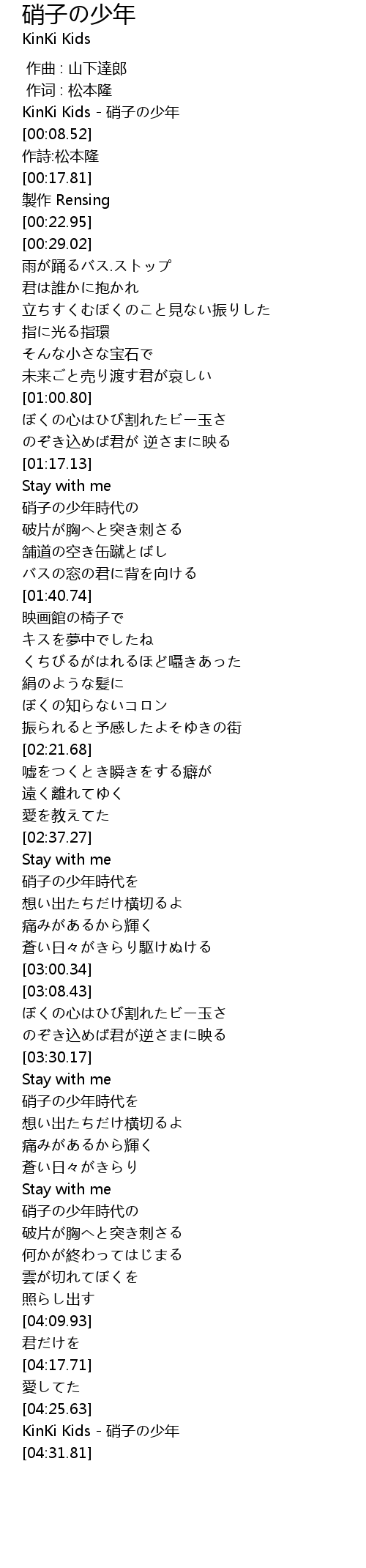 | [04:27.91] | KinKi Kids - 硝子の少年 |