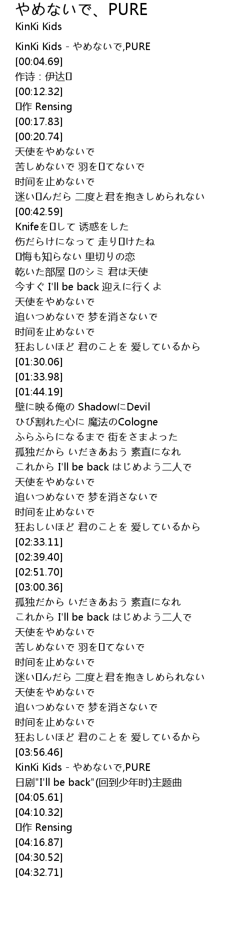 | [03:57.83] | KinKi Kids - やめないで,PURE |