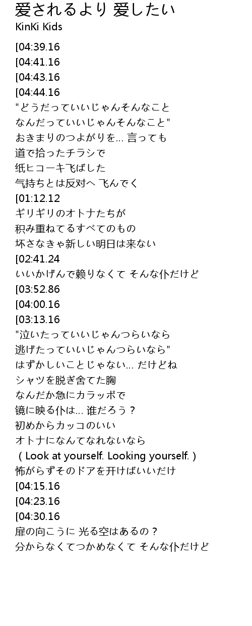 | [01:18.43][02:41.24][04:08.16] | 爱されるよりも 爱したい真剑で |