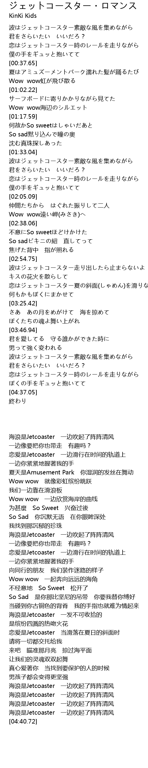 | [04:04.33] | 波はジェットコースター素敵な風を集めながら |