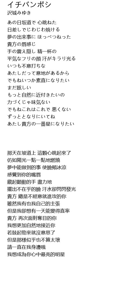 | [01:25.71] | あたし貴方の一番星になりたい |