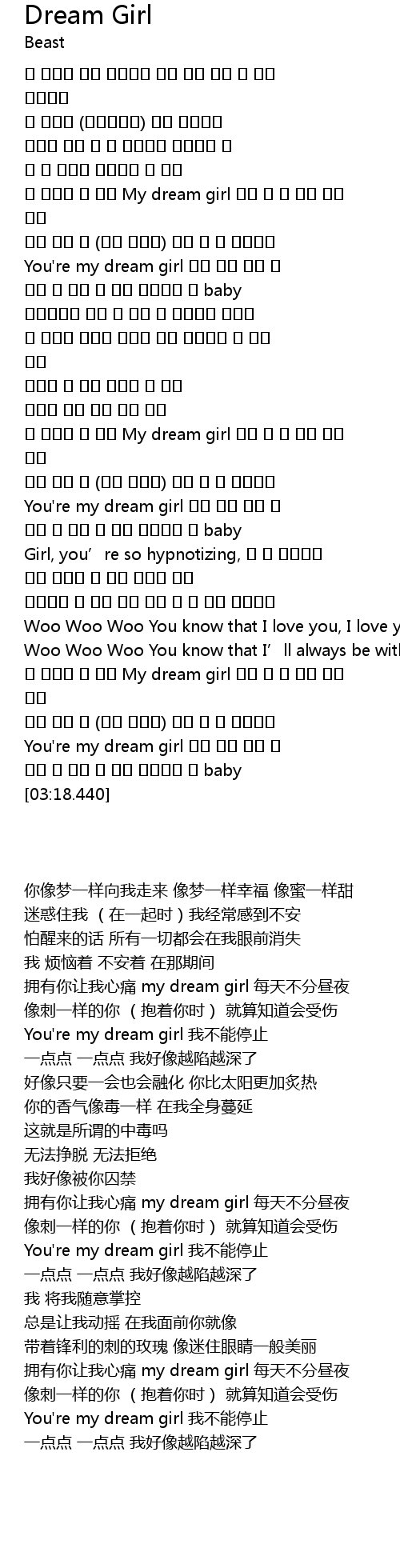 | [03:04.610] | You're my dream girl 멈출 수가 없어 난 |