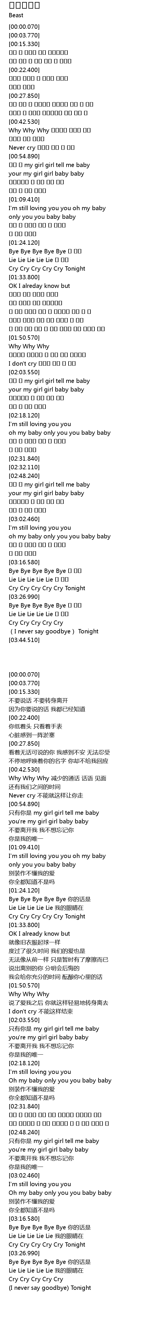 | [03:23.770] | Cry Cry Cry Cry Cry Tonight |