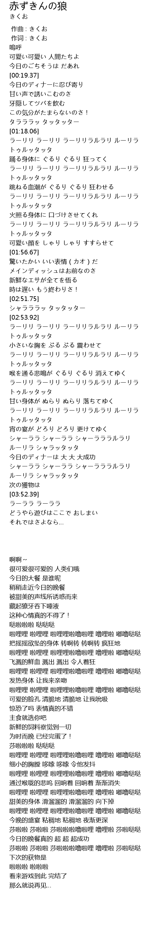 | [01:37.61] | ラーリリ ラーリリ ラーリリラルラリ ルーリラ トゥルッタッタ |