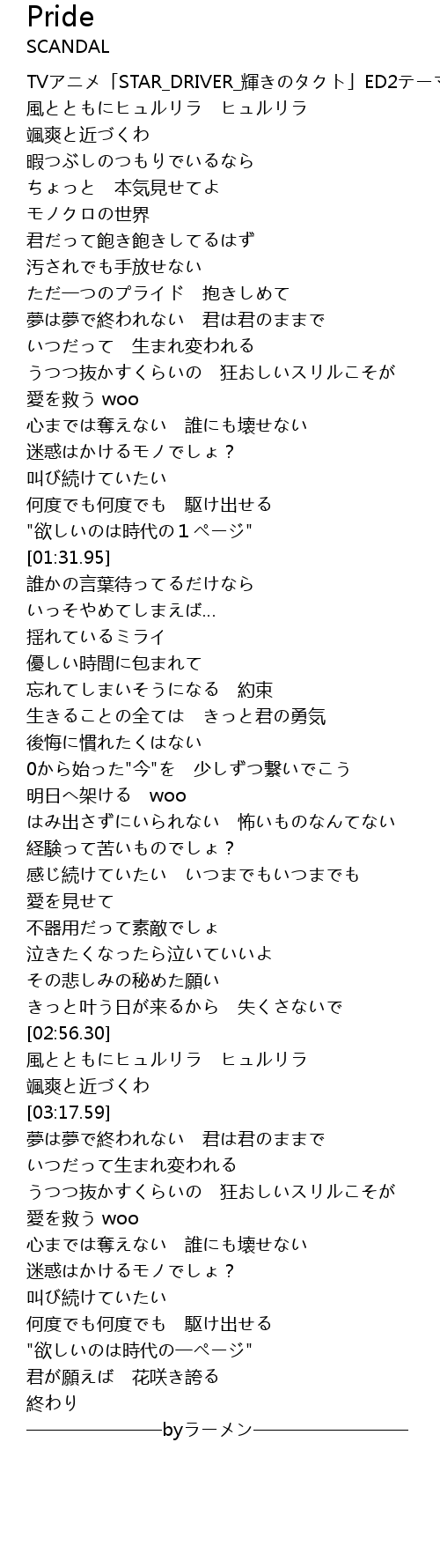 | [00:17.46] | TV STAR_DRIVER_ huī ED2 |