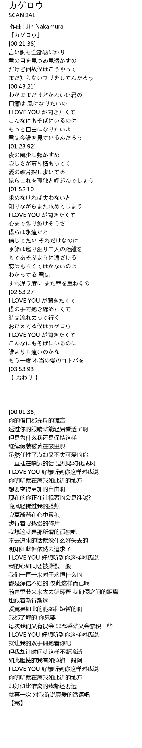 | [00:01.38] | 「カゲロウ」 |