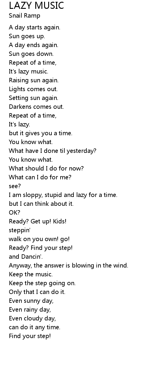 LAZY MUSIC Lyrics