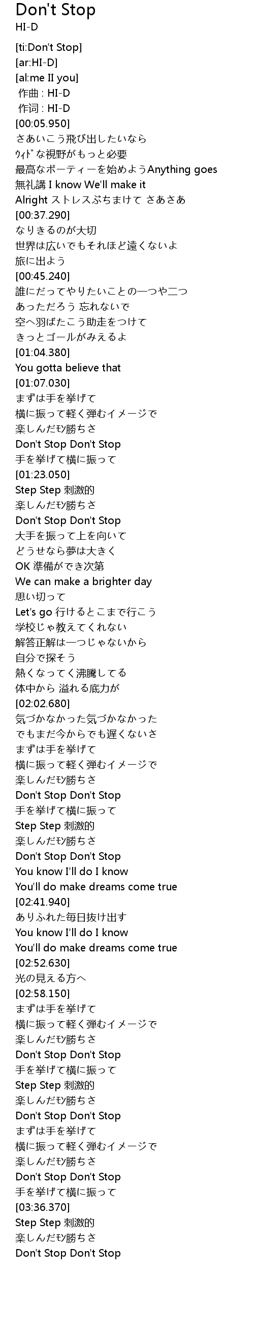 | [03:19.660] | Don' t Stop Don' t Stop |