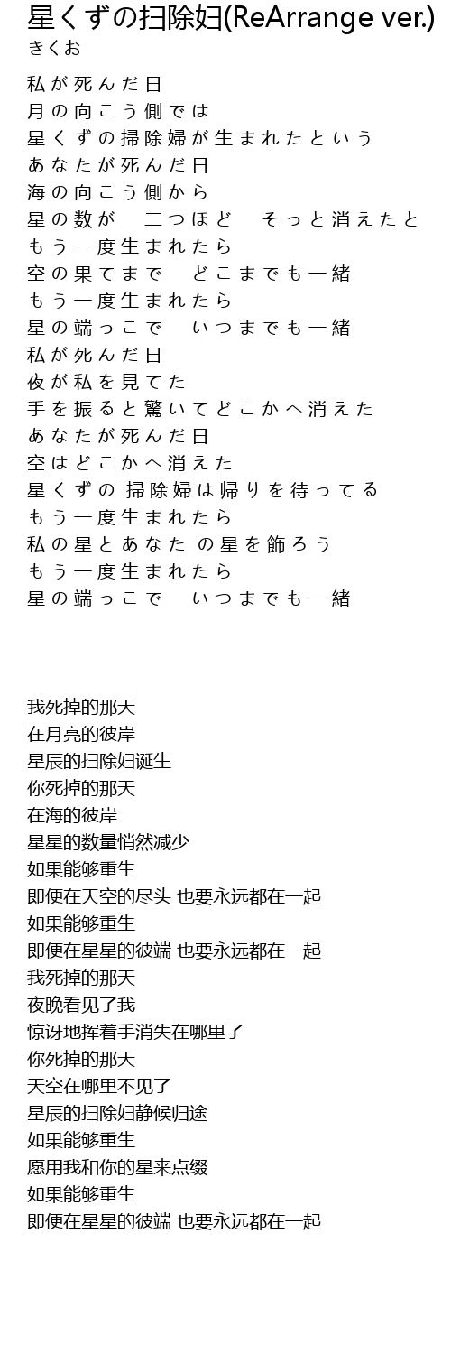 | [00:43] | 星 く ず の 掃 除 婦 が 生 ま れ た と い う |