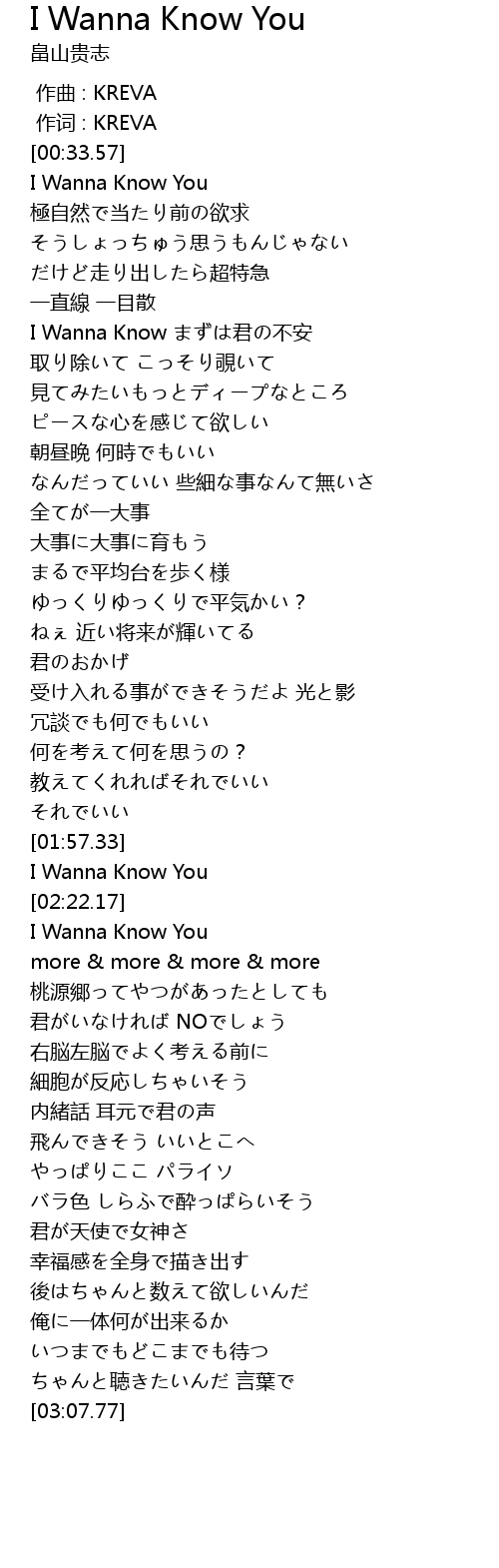 | [01:10.56] | I Wanna Know jūn bù ān |