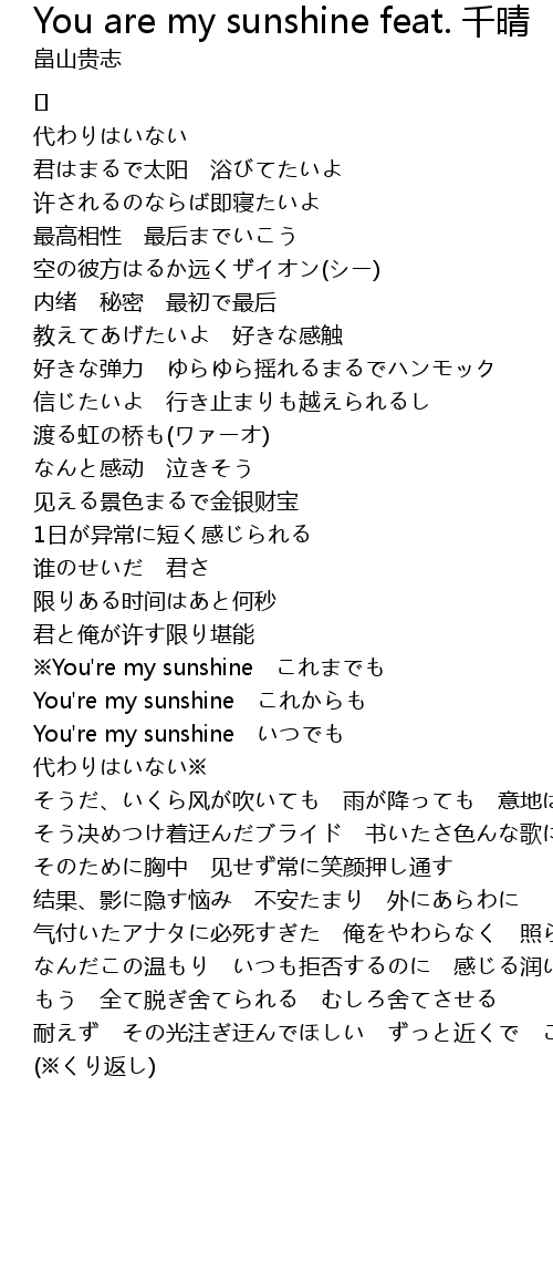 | 耐えず その光注ぎ迂んでほしい ずっと近くで これが俺の本音 | |