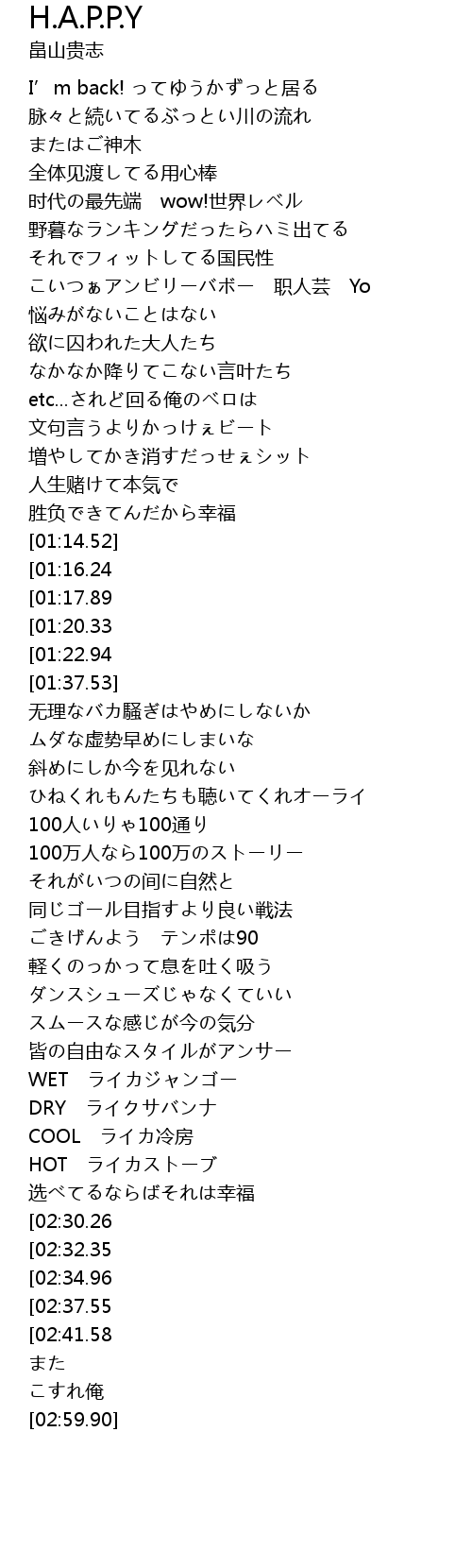 | [01:33.57][01:22.94] | 俺はH.A.P.P.Y※ |