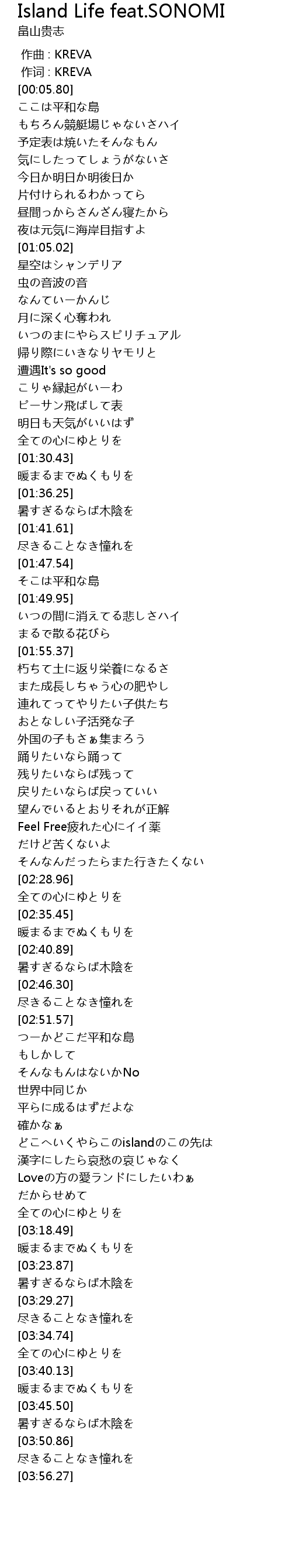 | [03:04.06] | どこへいくやらこのislandのこの先は |