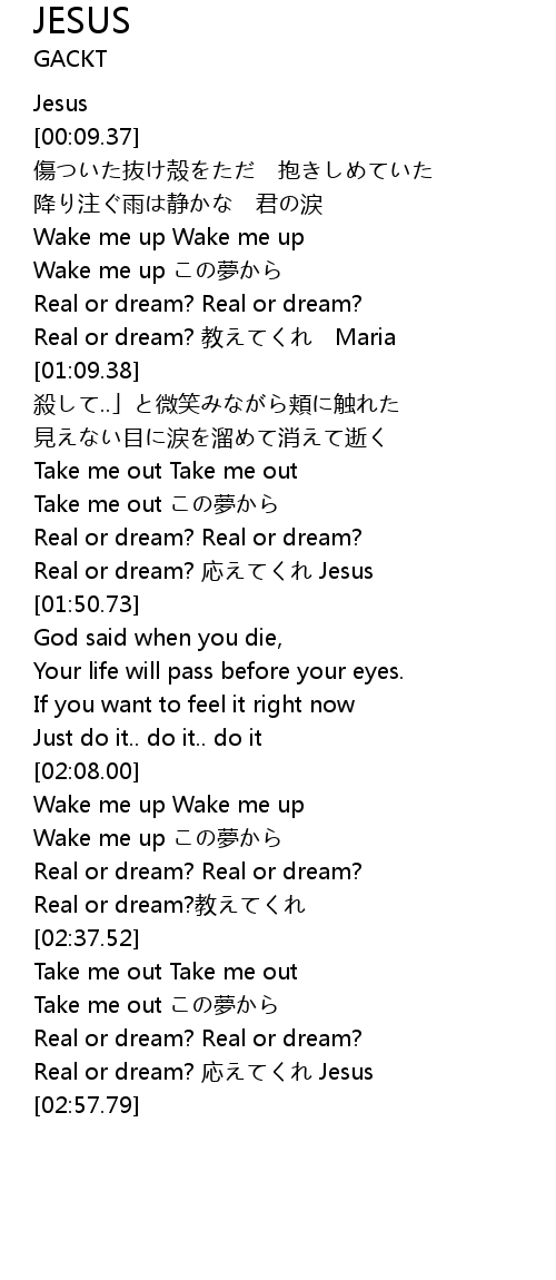 | [01:45.49] | Real or dream? 応えてくれ Jesus |