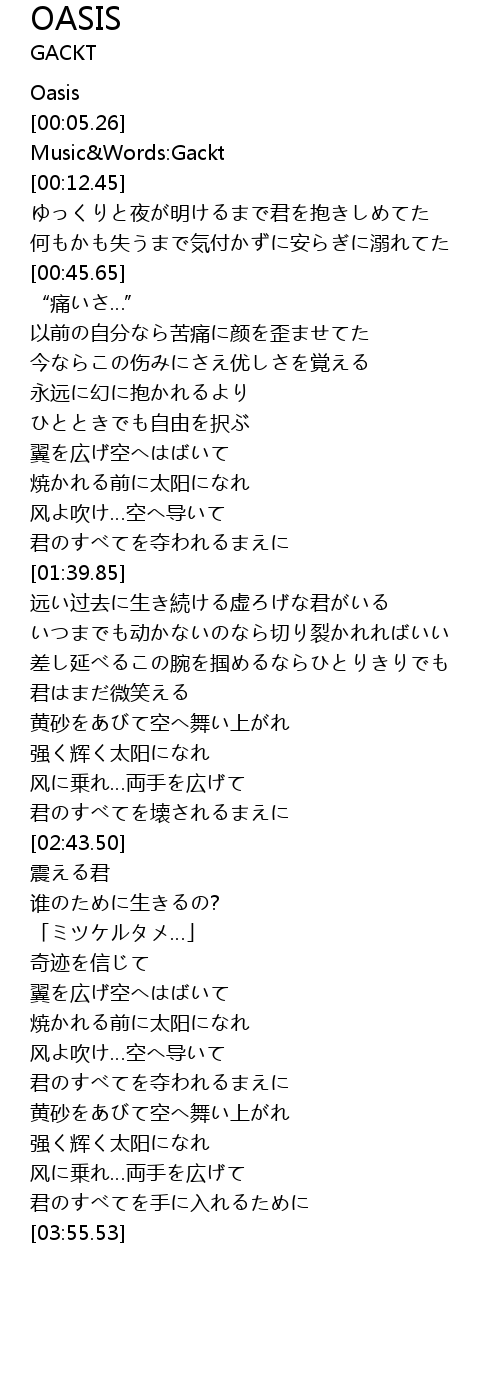 | [00:08.42] | Music Words: Gackt |