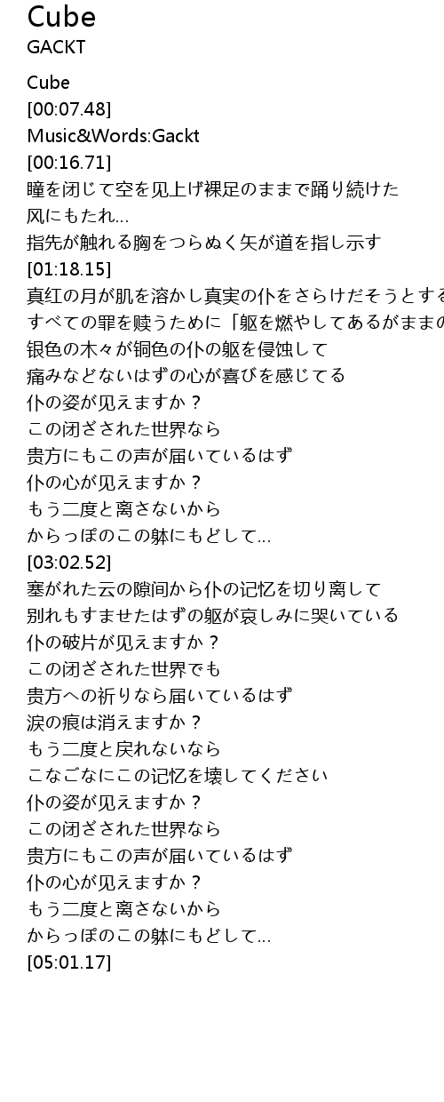 | [00:10.67] | Music Words: Gackt |