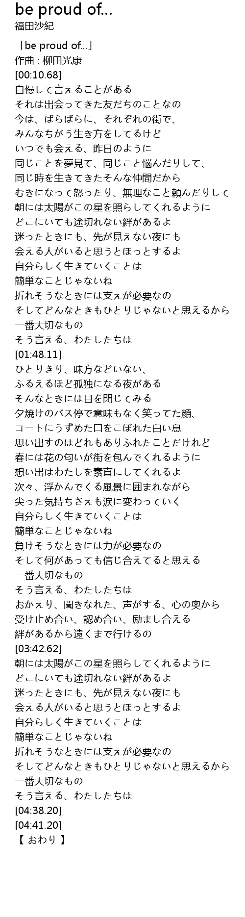| [04:20.90] | そしてどんなときもひとりじゃないと思えるから |