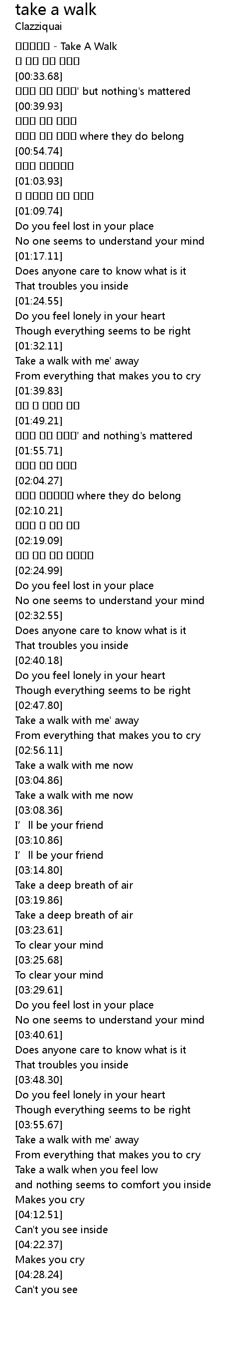 | [00:02.62] | 클래지콰이 - Take A Walk |